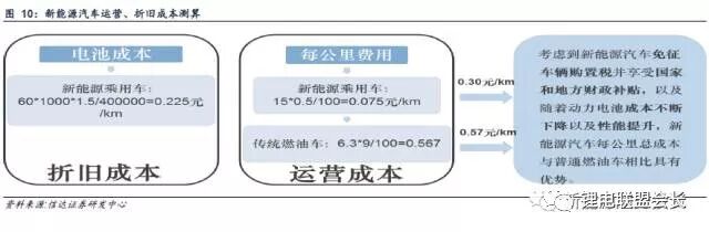 我们认为,新能源汽车使用成本的最大优势在于运营成本低。如果使用慢充方式进行充电,目前北京居民用电价格不足0.5元/度,对于百公里耗电15度左右新能源乘用车每公里运营成本约为0.075元/公里。与之相对应,目前原油价格处于相对低位,汽油价格约为6.3元/升,则一辆耗油约为9升/百公里的燃油车运营成本在0.567元/公里左右。运营成本角度看,新能源车具有很大优势,成本约为燃油车的1/8左右。电池成本方面,电池容量在60KWh,单价按照1.5元/Wh计算,能够行驶40万公里以上,因此折旧成本在0.225元/公里。综合考虑折旧成本与运营成本,优势仍未消失。