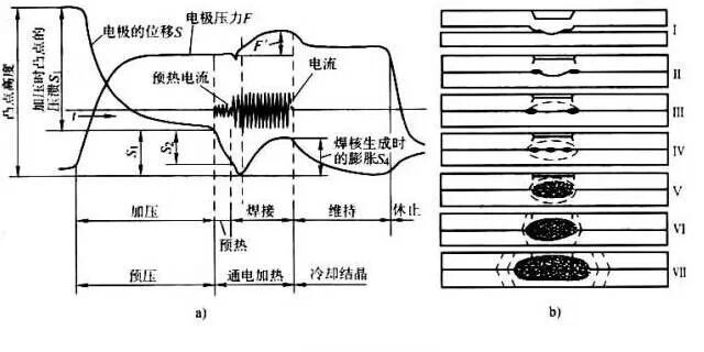 电流密集于凸点,与点焊相比,焊接电流分布更集中,故可用较小电流进行焊接,并能可靠地形成较小的熔核。