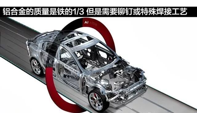 在材料的使用方面,最受关注的是铝合金与镁合金,这两种材料主要代替钢铁,减轻重量,提高强度。铝的重量只有铁的1/3,并且回收利用率高,汽车中的铝有85%是可以回收的。是铁的2倍。但是铝也有很多缺点,比如铝不能够焊接,不容易钣金,喷漆也麻烦,在安全性不如钢。因此目前一些厂商只是部分使用铝合金,车身大部分结构还是钢铁的。